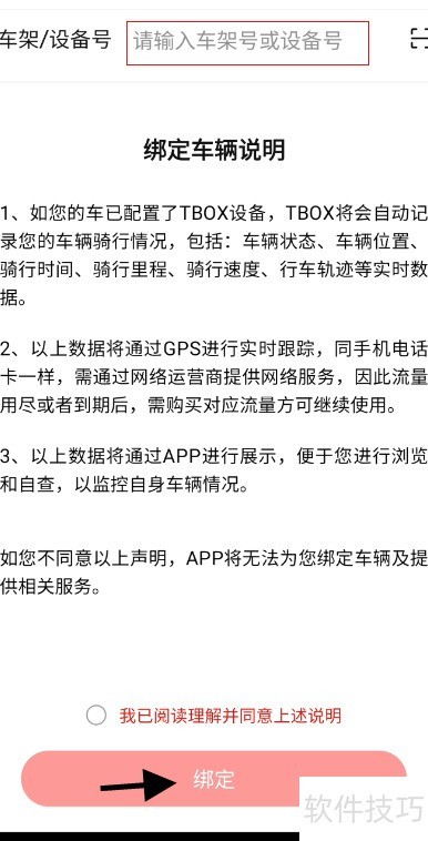 3、 输入车架号后,点击绑定完成车辆添加操作。