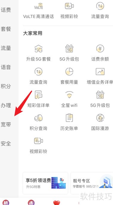 6、 进入电信营业厅,点击底部查询办理功能即可。