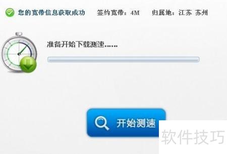 4、 点击下载测速后进入界面,再点开始测速,系统将自动运行测试,一段时间后显示测速结果。