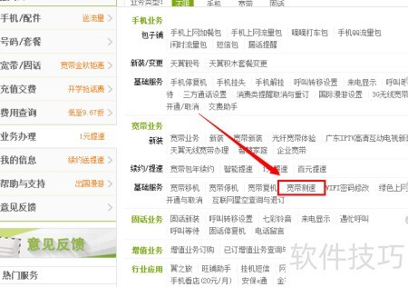 2、 登录电信官网,输入账号密码后,进入业务办理页面,点击宽带测速,选择下载绿色客户端即可完成操作。