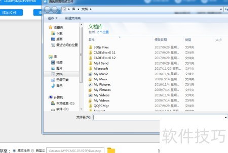 2、 在选择视频文件界面,找到并点击打开选项,选取已准备好的原始视频文件,即可导入进行后续转换操作。
