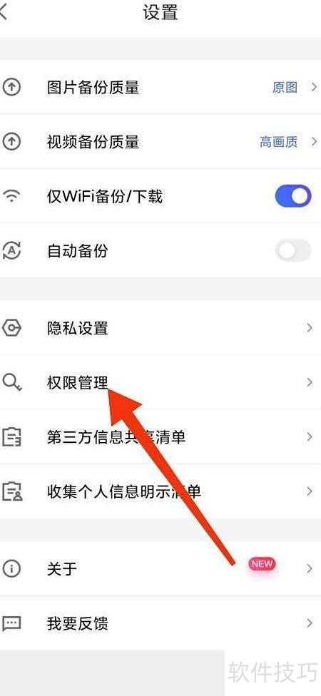 2、 进入设置,点击权限管理选项。