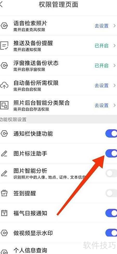 3、 进入权限管理,开启图片标注助手功能。