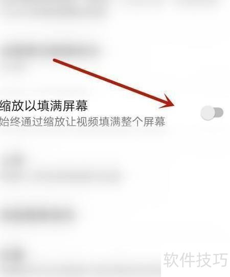 4、 最后点击开启缩放以填满屏幕的开关按钮。