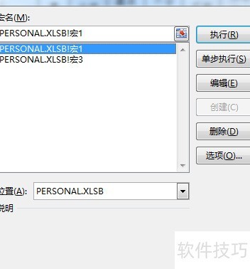 2、 取消隐藏PERSONAL工作簿,即可看到名为PERSONAL的文件。打开宏列表,其中包含已保存的宏指令,选中不需要的宏并执行删除操作即可完成清理。