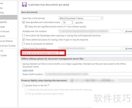 4、 在默认个人模板位置栏中输入自定义Word模板的存储路径。