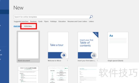 5、 此后新建Word文档时,点击按钮即可选用个人模板。