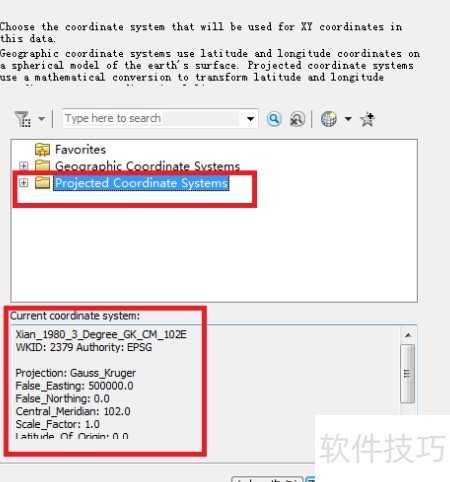 5、 在坐标系设置窗口中选择所需的类型,包括地理坐标系和投影坐标系,确认后点击下一步继续操作。