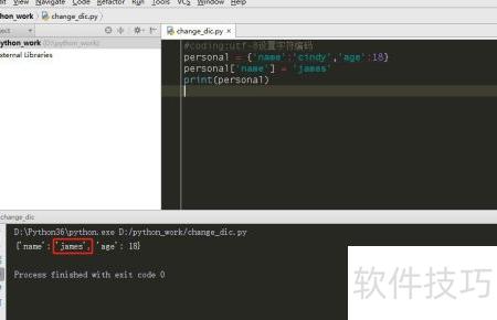 8、 运行change_dic程序,点击执行后可观察到程序成功运行的结果。