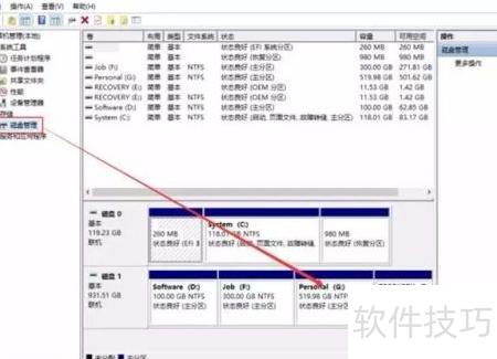 4、 进入磁盘管理,定位到个人(G:)盘符。