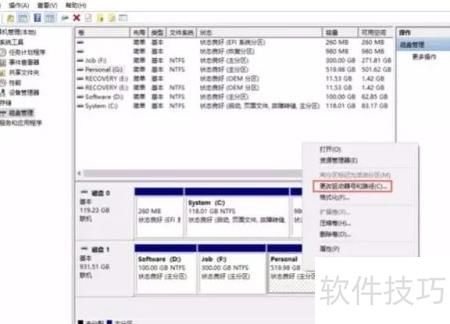 8、 若要恢复,请进入磁盘管理,右键点击personal,选择更改驱动器号和路径,添加并确认即可。