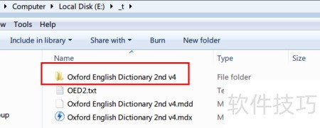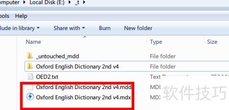 1、 将与两个文件下载后,统一存放在E盘的_t文件夹中。确保两个文件均完整保存在同一目录下,以便后续正常使用词典功能,避免因文件缺失导致无法加载释义或资源。