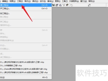 1、 启动Visual Basic后,点击右上角菜单,从下拉选项中选择新建工程即可开始创建新项目。