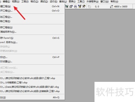 3、 在菜单中选择新建项目。
