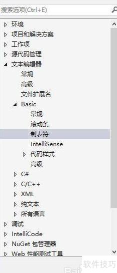 4、 选用文本编辑器,Basic语言,设置制表符。