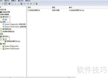 4、 在数据收集器集的用户定义中可查看已创建的性能监视器,同时对应报告文件会自动生成于报告下的用户定义目录中。