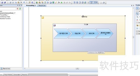 PowerDesigner进程图用于呈现与人员和组织无关的业务架构,展现各项业务功能并对流程进行分类。例如客户下单的业务流程图,下文将对此进行详细说明。
