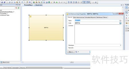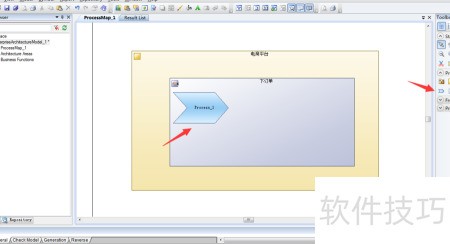 7、 在右侧工具栏中选择图标,随后于架构区域点击,即可创建业务功能,具体操作所示。