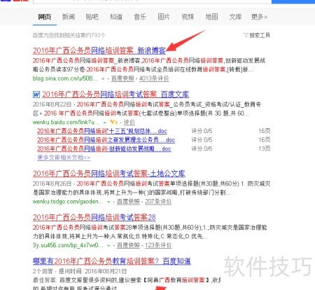 3、 搜索2016年广西公务员网络培训答案相关标题内容,按此关键词进行查找即可精准定位所需信息。