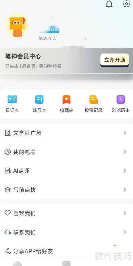 1、 打开神笔作文app,进入我的页面,点击练习本即可查看详情。