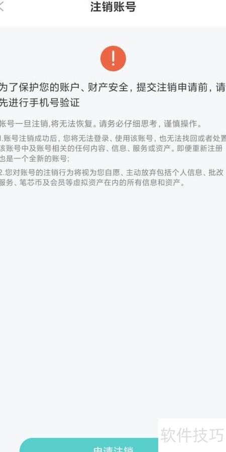 5、 进入注销账号页面,仔细阅读相关须知,确认无误后点击底部的申请注销按钮,并按照手机提示完成后续操作。