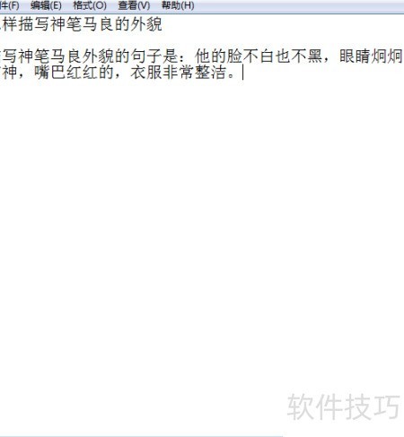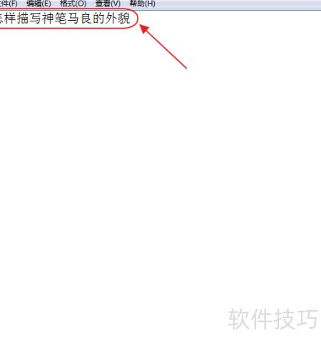 2、 在记事本首行写下如何描绘神笔马良的外貌特征作为标题。