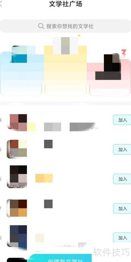 2、 在文学社广场页面底部点击创建新文学社按钮,进入社团申请界面。