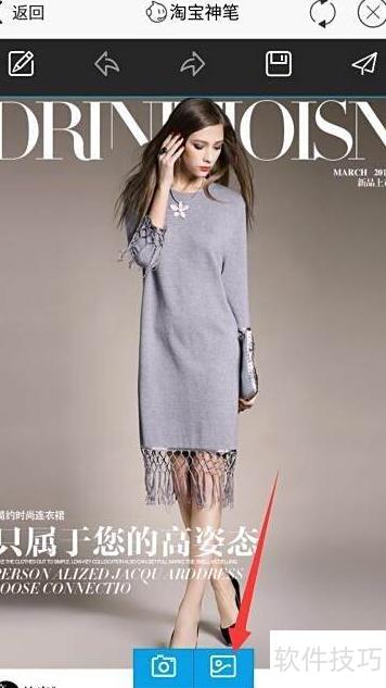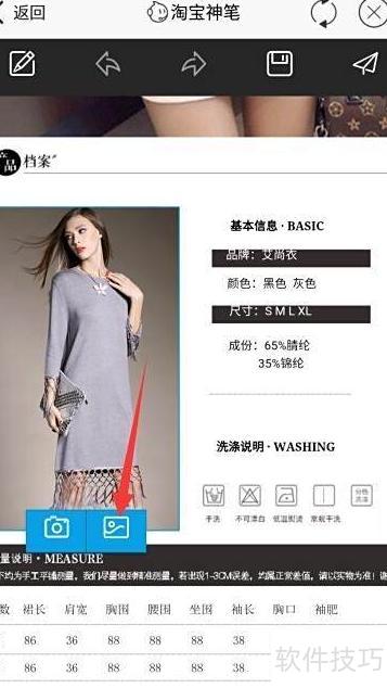 3、 第四步,进入模板后点击图片区域,底部会弹出蓝色操作栏。左侧图标为拍照功能,可直接拍摄照片;右侧图标用于从手机相册中选取已有图片(需提前将所需图片保存至手机)。此时点击右侧图标,系统将显示手机中的所有图片,从中选择与宝贝对应的图片即可完成上传。