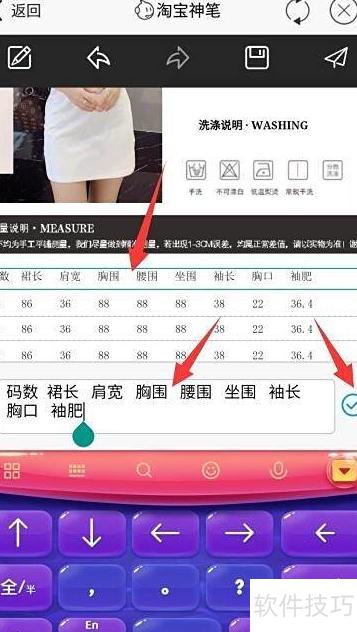 4、 第五步,完成上述操作后,模板中的图片已替换为自己的内容。继续下滑,可依次修改其他图片和文字。修改文字时,点击对应位置,下方即会出现文字编辑框,便于调整。