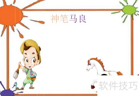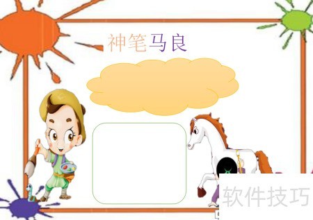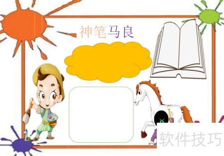 4、 在手抄报左下角画一个手持毛笔、神气十足的马良。