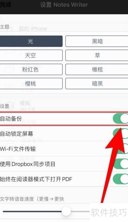 4、 自动备份后圆点变灰,表明Notes Writer已成功关闭该功能。
