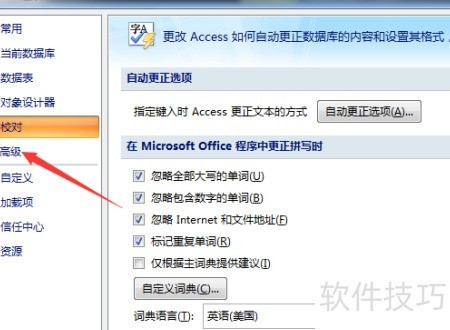 4、 在弹出的access选项窗口中,选择高级设置项。