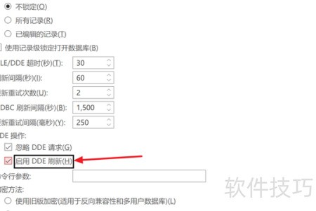 5、 在右侧高级选项中,找到DDE操作组并勾选启用DDE刷新功能。