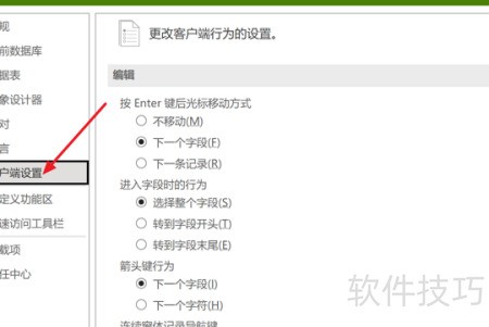 4、 在Access选项对话框的左侧列表中,点击选择客户端设置。
