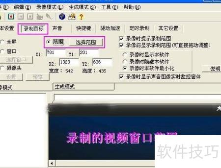 6、 可将视频设为全屏播放,也可根据需要选择窗口录制。点击录制目标后,选取范围选项,通过鼠标拖动划定所需录制的视频区域即可完成设置,操作灵活便捷,按个人需求调整录制方式。