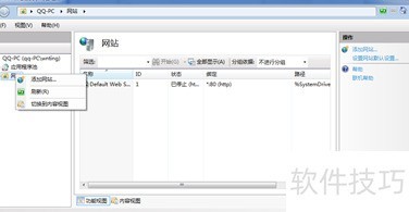 9、 打开Internet信息服务(IIS)管理器,可通过开始菜单进入控制面板,选择管理工具中的IIS管理器。该界面从左至右分为三个区域:连接管理、应用服务管理与操作管理。利用连接管理功能,可进行网站配置、新增网站以及设定网站地址池等操作,便于对服务器上的站点进行统一管理和调整。