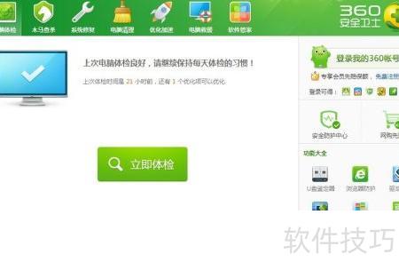 1、 启动已安装的360安全卫士并连接网络,可提升修复效率。