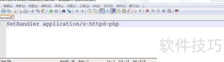 3、 上传.htaccess文件成功后,需预先创建1.htaccess文件,其中添加SetHandler指令,使服务器将所有文件类型均作为PHP文件进行解析,从而实现特定的解析控制效果。