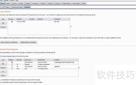 4、 启动Burp Suite后,默认监听地址为127.0.0.1:8080,在intercept标签页中启用拦截功能,确保状态显示为intercept is on,即可开始捕获和修改HTTP/HTTPS流量。