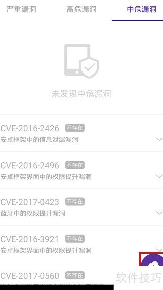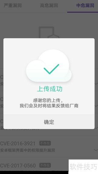 8、 查看完成后,可点击界面底部的云朵图标,上传手机漏洞信息,帮助厂商快速获取反馈,及时推出补丁修复问题。