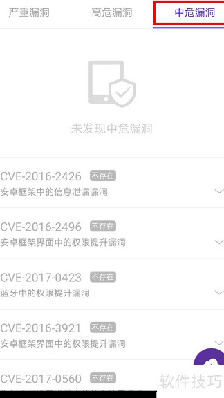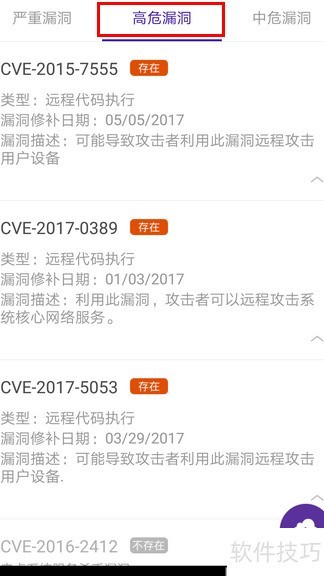 7、 点击顶部导航栏,依次选择高危漏洞和中危漏洞,查看相关详细说明。