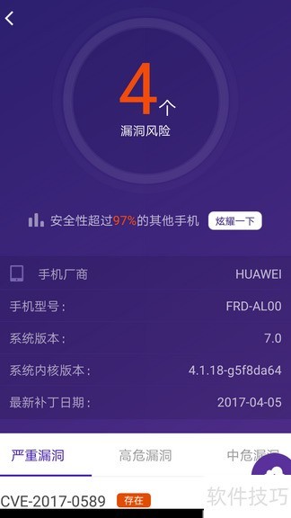 4、 扫描结束后,将显示发现的漏洞数量及手机品牌、型号等详细信息。