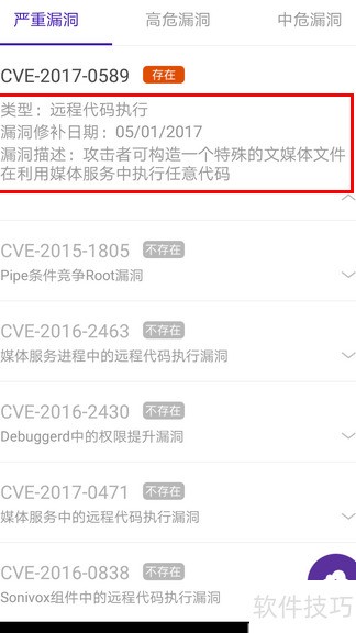 6、 严重漏洞属于最高风险等级,点击其编号右侧的下拉箭头可展开详细描述,查看具体说明内容。