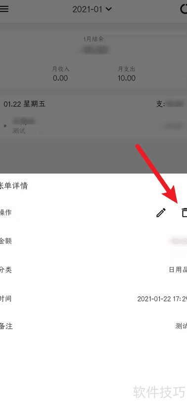 4、 点击展开菜单中的垃圾桶图标即可删除。