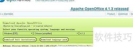 1、 从OpenOffice官网下载所需语言包,操作所示。
