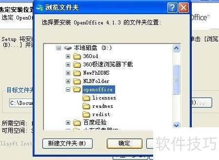 3、 将安装路径更改为Open Office的安装文件夹,具体位置见示意图。