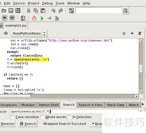 7、 Wing IDE默认按输入字符串直接查找文本,用户还可通过选项菜单启用通配符或正则表达式搜索功能,以满足不同检索需求。