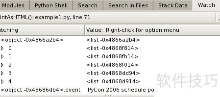 8、 通过直接引用监视——Wing IDE会持有特定对象实例(如列表)的引用,并实时在监视工具中显示其值。一旦该对象实例的引用计数降为零,无法再访问,Wing IDE便会提示,表示目标值已不存在或无法定位。