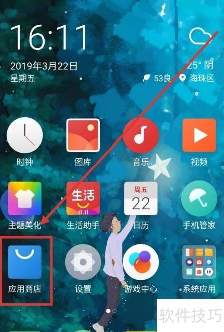 1、 进入手机桌面后,点击系统自带的应用商店图标即可,具体操作所示。