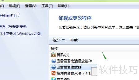 15、 进入软件卸载界面,定位迅雷看看播放器并执行卸载操作。